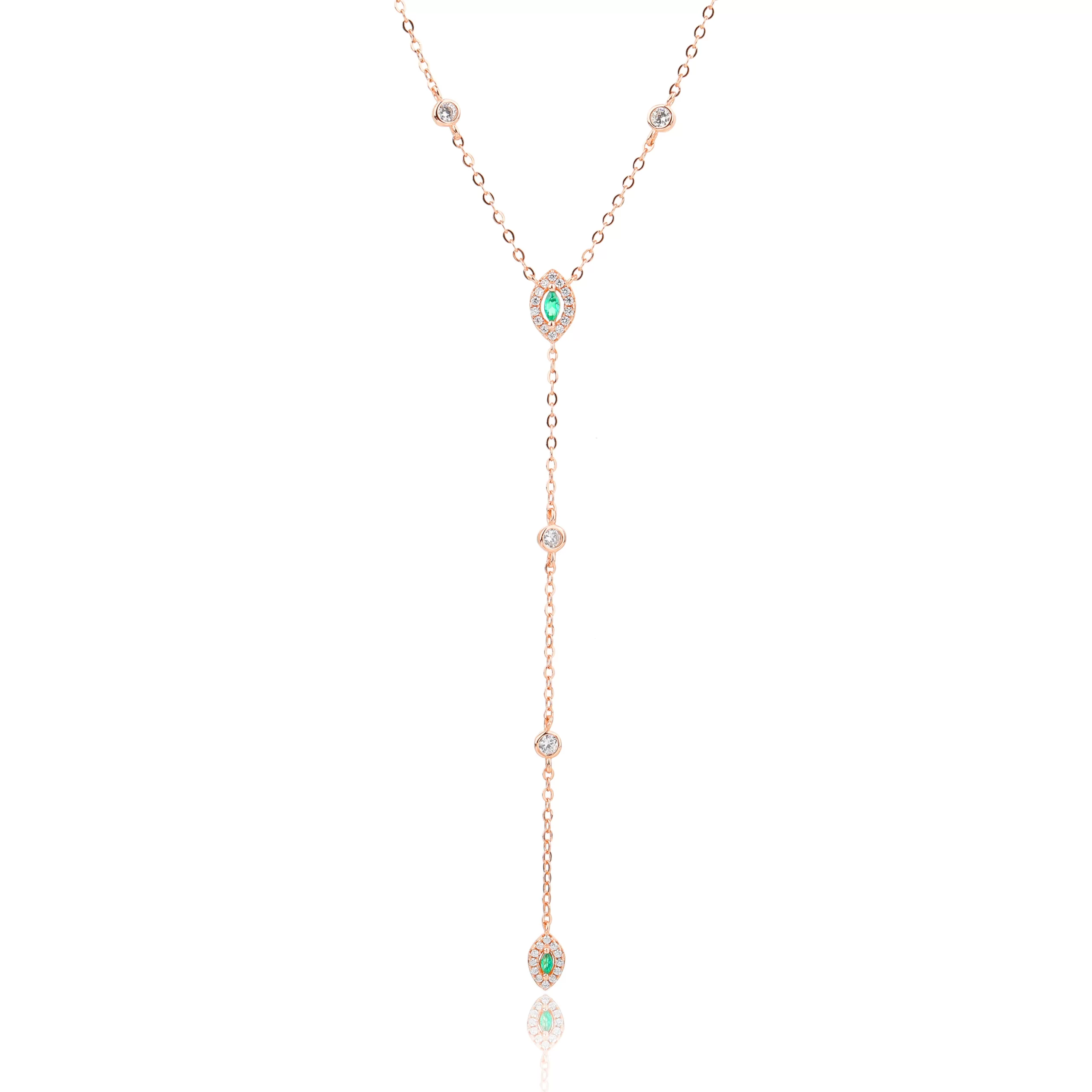 שרשרת Rose Gold תליון נופל אבנים ירוקות